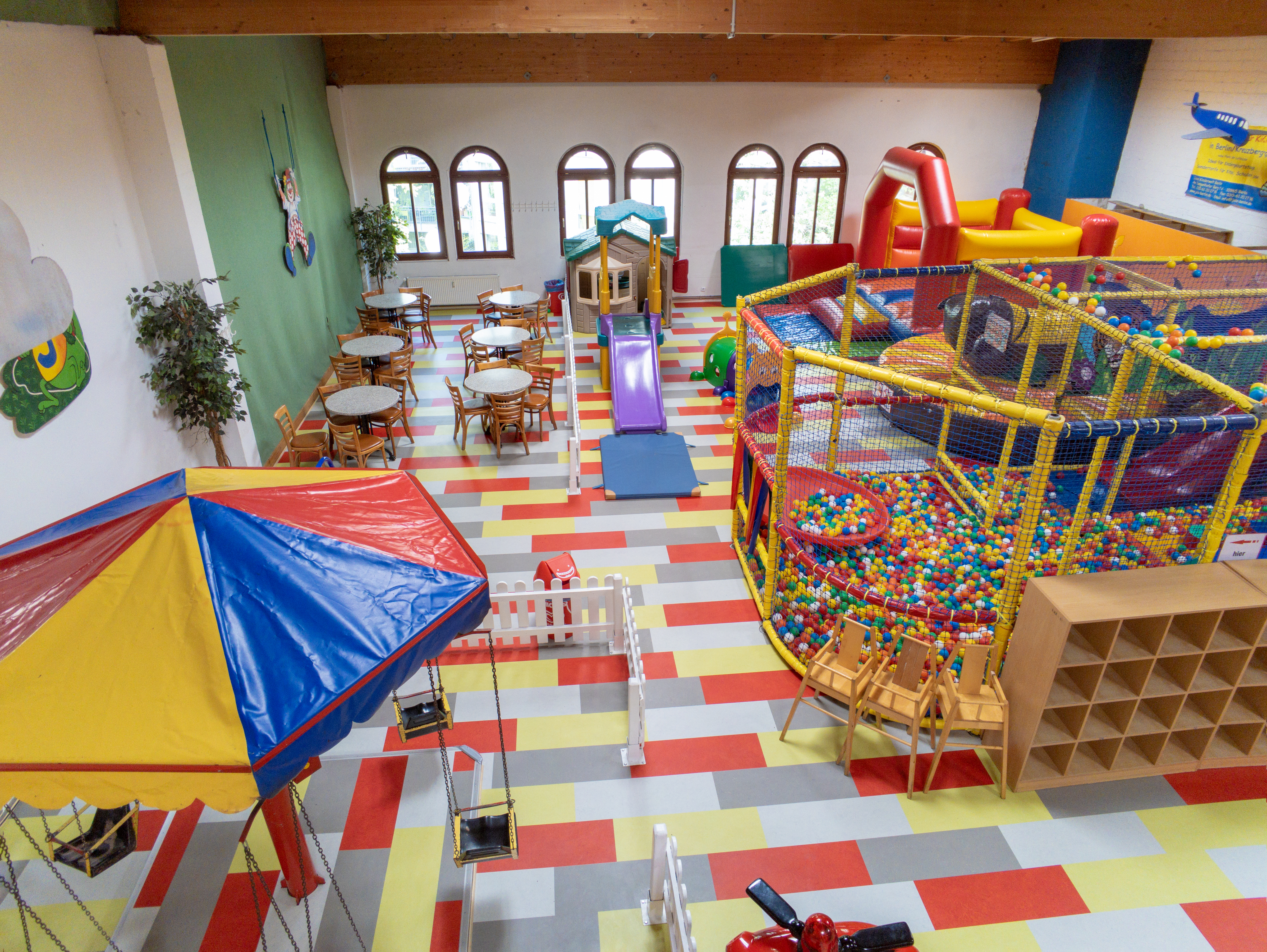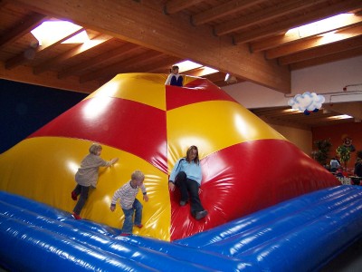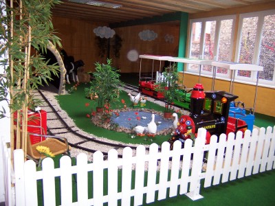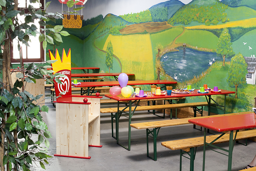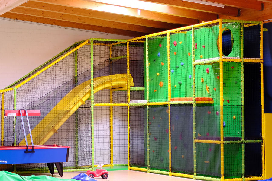 Mit Kindereisenbahn, Hüpfburgen, Riesenkrokodil, Softmountain, Kletterwand, Race Car, Motorik-Spiele, Kettenkarussell, Spielhaus, Spiel- und Abenteuerlandschaft mit Doppelwellenrutsche, Röhrenrutsche, Ballpool, Netzbrücken, Kletternetzen, Kriechtunnel, Airhockey!